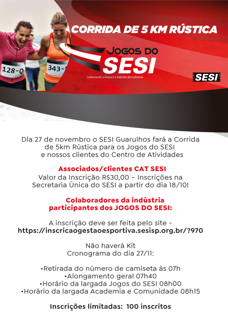 Inscrições podem ser feitas presencialmente, na Secretaria, a partir de 14 de outubro