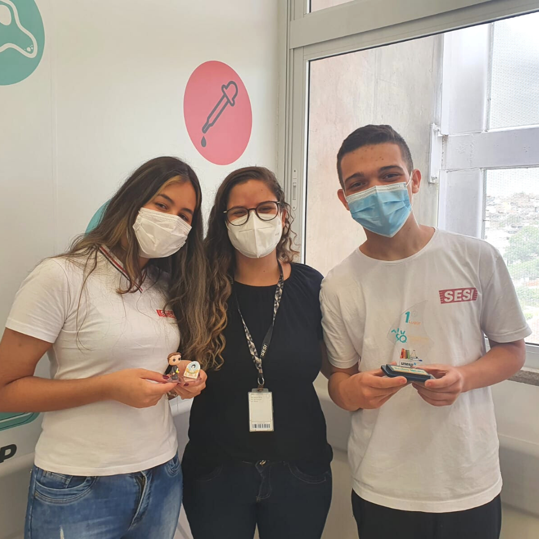 Os alunos do 3° ano do Sesi Hagop Guerekmezian, Auany Bezerra e Gabriel Cordeiro, ganharam o prêmio Marie Curie de melhor trabalho apresentado na categoria Ensino Médio na XIV Semana da Química, um evento anual organizado pelo Departamento de Química da Faculdade de Ciências na UNESP de Bauru.
